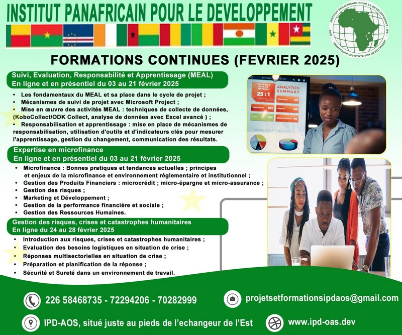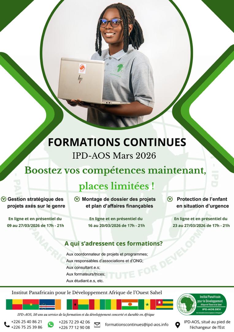 Trois formations : Mars 2026 à l’Institut Panafricain pour le Développement région Afrique de (…)